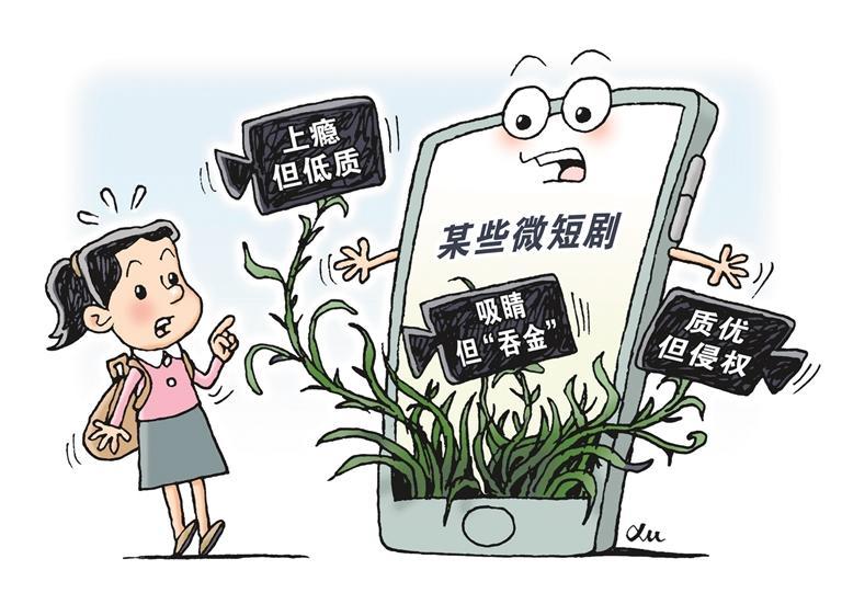 “欲罢不能,看到停不下来”“一天刷了80集”……今年以来,比电视剧“短平快”、比短视频更连贯的微短剧,凭借情节直白、“爽点”密集等特点,在网络视频平台收视火爆;同时,付费观看“套路”多、内容浮夸制作粗、未经许可转载传播涉侵权等问题也饱受争议。对此,中国网络视听节目服务协会近期发布《微短剧版权保护倡议书》,呼吁尊重知识产权,维护创作尊严,加大打击力度,严惩侵权行为;广电总局今年启动专项治理,进一步加强规范管理,促进行业健康有序发展。微短剧满足了当代观众快节奏生活下的娱乐需求,也为内容创作者提供了新的表达空间和商业机会。有必要进一步打磨精品内容,提升整体品质,同时统一收费模式,优化自动续费机制,让微短剧发展之路越走越宽。(时 锋)