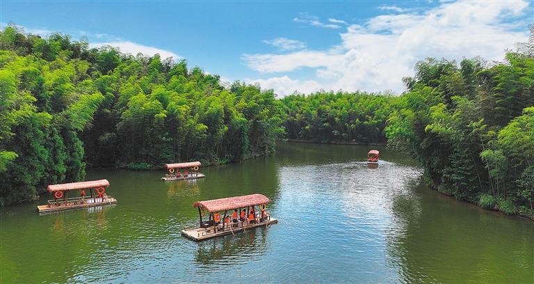 近年来,四川省宜宾市因地制宜发展竹产业,发挥好竹海优势,努力把竹林建设成为美丽乡村的一道风景线。按照“快旅慢游”标准完善景区内外交通体系,持续推进蜀南竹海度假区标准化提升工程,改造度假区道路及步游通道,建设充电桩150个,新增停车位1000余个,改造提升品牌特色民宿100多家。