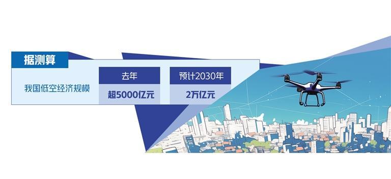 目前,以传统通用航空和新型无人机产业为基础的低空经济在我国正蓬勃发展。截至2023年底,我国通航企业达689家,通用机场451个。据测算,去年我国低空经济规模超5000亿元,预计2030年有望达到2万亿元。