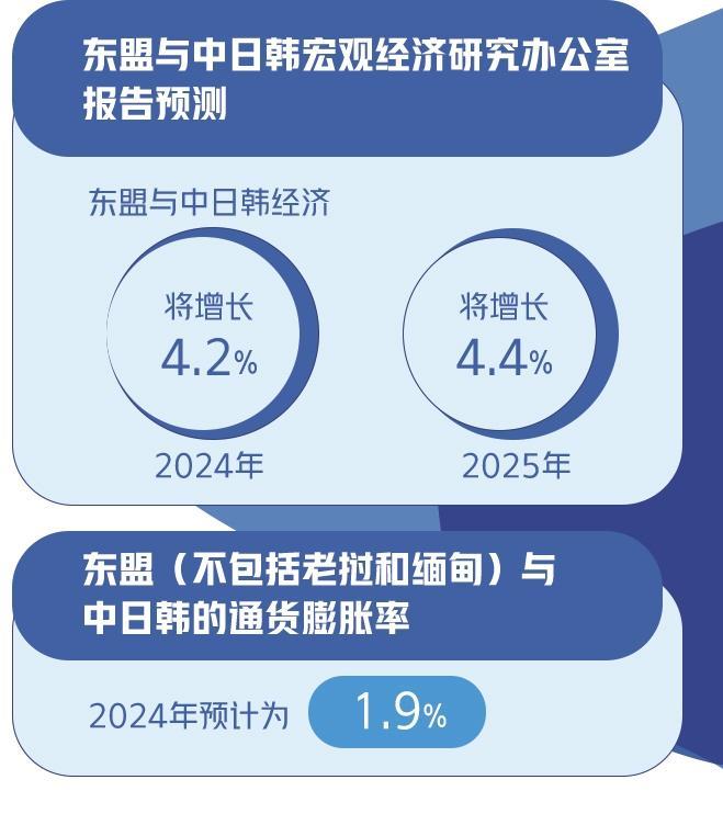 数据还显示,东盟(不包括老挝和缅甸)与中日韩的通货膨胀率2024年预计为1.9%,略低于7月预期的2.1%。
