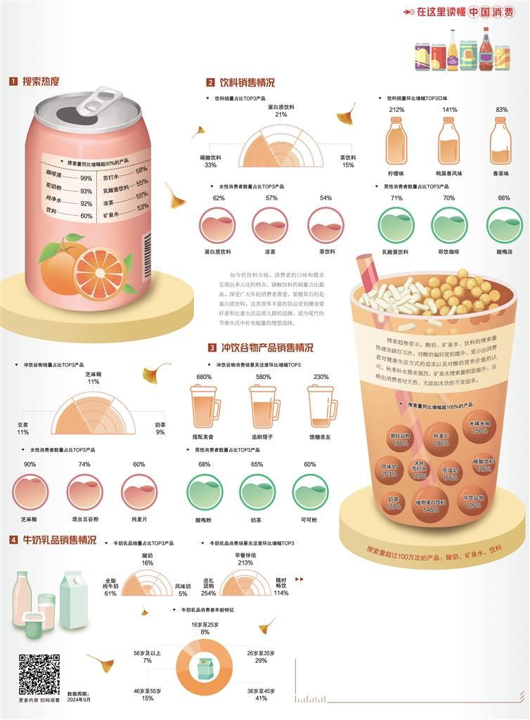 秋季天干物燥,人们更加注重补充水分和养生,持续带动饮品消费潜力释放。从果汁到咖啡再到茶饮,消费者对不同饮品的偏好不尽相同,既要解渴生津,还要有丰富的营养。
