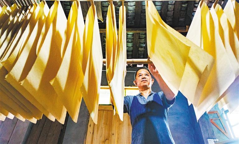 ▲9月20日,梁平木版年画国家级代表性传承人徐家辉展示年画传统制作技艺。徐家辉是梁平木版年画第六代传承人,长期致力于非遗年画的保护传承。