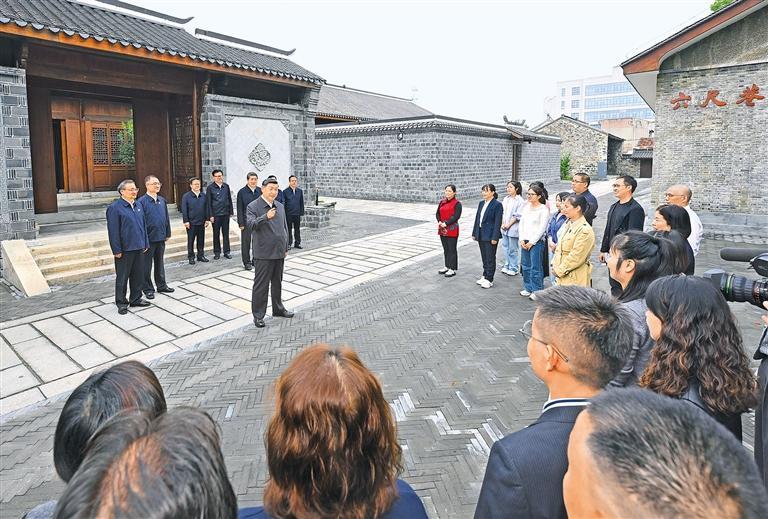 17日下午,习近平首先来到安庆桐城市考察。地处城中的六尺巷,因清代大学士张英与邻居吴家互相退让三尺地基而成,是中国邻里和谐礼让的典范。习近平来到这里,了解六尺巷历史及其传承,察看“桐城派”相关文物资料,听取当地传承弘扬中华优秀传统文化、加强精神文明建设等情况介绍。他强调,要加强历史文化保护,坚持创造性转化、创新性发展,在发展社会主义先进文化、弘扬革命文化、传承中华优秀传统文化上协同发力,打牢社会治理的文化根基。