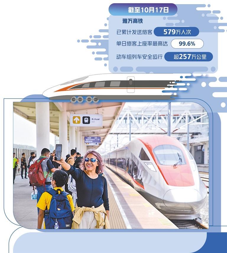 2023年10月17日,中国高铁全系统、全要素、全产业链在海外落地的“第一单”——全长142.3公里的雅万高铁正式开通运营。数据显示,截至2024年10月17日,雅万高铁已累计发送旅客579万人次,单日旅客上座率最高达99.6%,动车组列车安全运行超257万公里,运输安全平稳有序,综合效益逐步显现。依托雅万高铁,一条活力满满的经济带正在千岛之国悄然隆起。