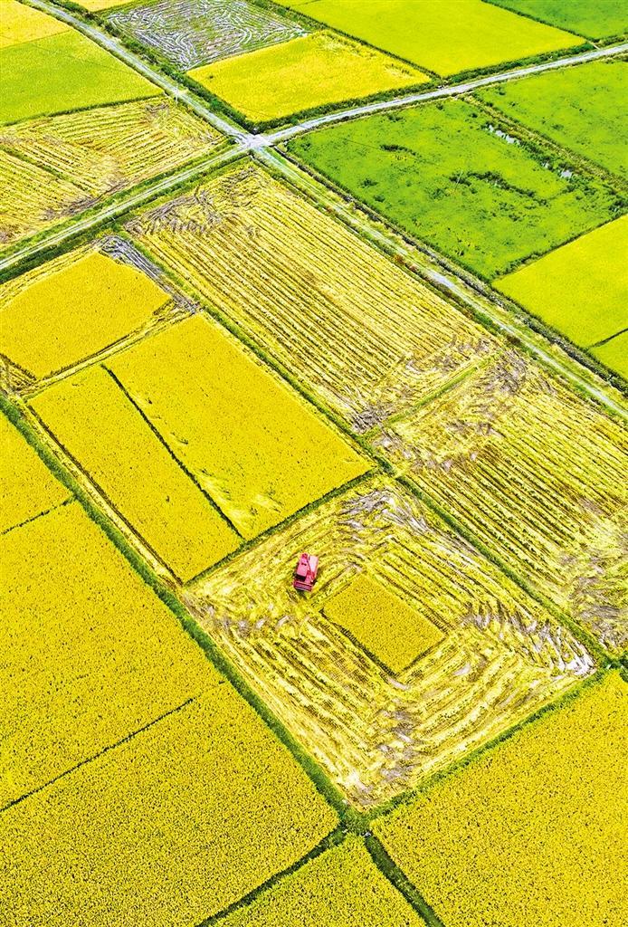 十月二十日,湖南省永州市道县梅花镇棠下村,农民驾驶农机收割晚稻。金秋十月,各地农户抢抓农时,进行秋种、秋收以及各项田间管理,到处呈现一派繁忙的景象。蒋克青摄(新华社发)