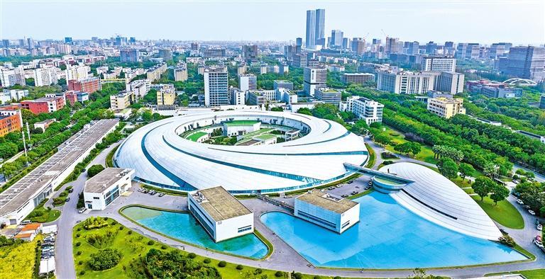10月18日,俯瞰坐落在上海张江科学城的上海光源,犹如一只巨型鹦鹉螺。作为国家重大科技基础设施,上海光源为上海科创中心和张江综合性国家科学中心建设提供了有力支撑。