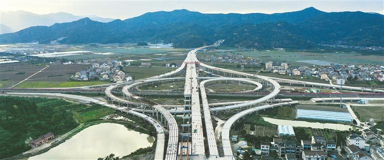 10月20日,浙江省台州市三门县甬台温高速至沿海高速联络线枢纽建设现场正在有序作业。项目建成后,将形成两纵一横的H形高速公路网,促进区域经济社会发展。