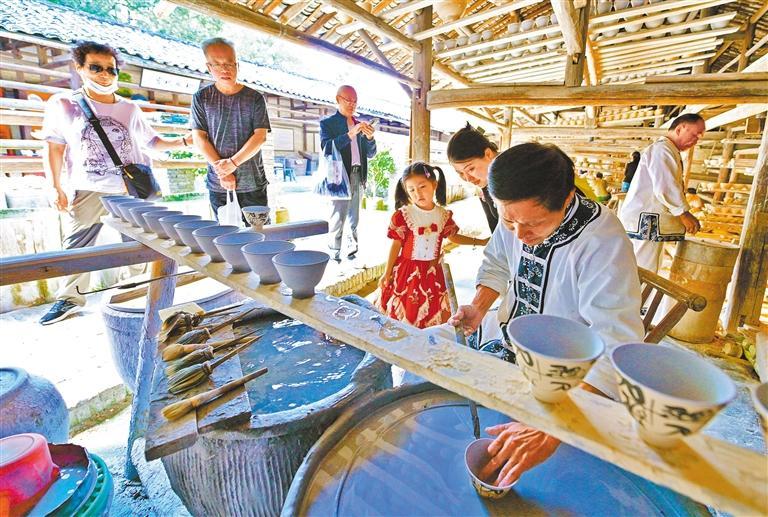 ◀10月19日,嘉宾在景德镇古窑民俗博览区观看陶瓷制作技艺。杨继红摄(中经视觉)