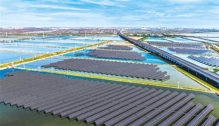 10月23日拍摄的位于连云港市的江苏农垦东辛农场渔光互补项目。近年来,当地因地制宜发展清洁能源,推动经济绿色转型。刘 兴摄(中经视觉)