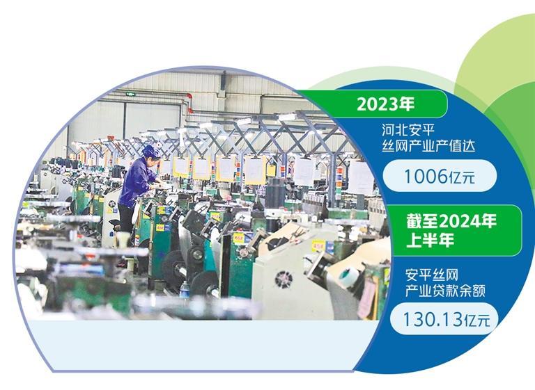 产业发展离不开金融活水。衡水市引导金融机构积极创新金融服务,支持丝网产业发展。截至2024年上半年,安平县丝网产业贷款余额达到130.13亿元,同比增长17.83%。