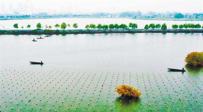 ▲10月22日拍摄的安徽省淮北市杜集区采煤沉陷区河蚌养殖基地。近年来,当地利用采煤沉陷区进行珍珠养殖,助农增收。李 鑫摄(中经视觉)