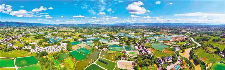 ▲10月22日,重庆市梁平区川西村,鱼塘与村落、田园、河流交相辉映,景美如画。