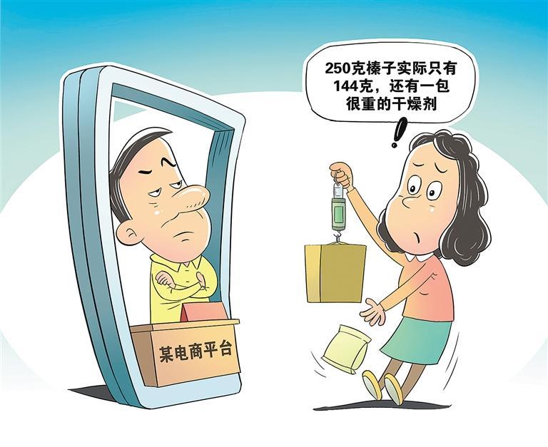 近期,有调查显示,某消费者在一家电商平台买了两罐榛子,商品页面描述显示两罐榛子共500克,但收到货称重后发现每罐实际重量只有144克,商家用的是加厚的塑料罐,还有一包很重的干燥剂。这类遭遇并非个案。宣称每卷100只的垃圾袋,实际只有50只;5两的螃蟹实际只有3两多;大包装零食,到手却是迷你版小包装……在投诉平台上,关于网购商品缺斤少两的投诉并不鲜见,这一问题已成为消费新痛点,严重损害消费者权益。电商平台应完善运营规则,挤压商家“套路”空间,特别是针对生鲜、零食等易受影响的产品类别。健全惩戒机制,及时惩处或清退违规商家,让企图缺斤短两的商家无空可钻。(时 锋)