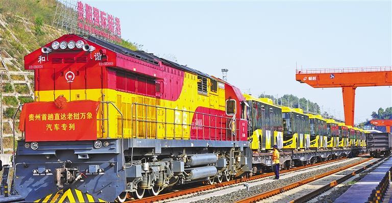 10月28日,一列装载“贵州造”新能源客车的出口专列,从贵阳国际陆港都拉营站开出,预计7天后抵达老挝万象。这是贵州本土生产的新能源客车首次出口老挝,也是贵州首次整列直发中老班列。龙建睿摄(中经视觉)