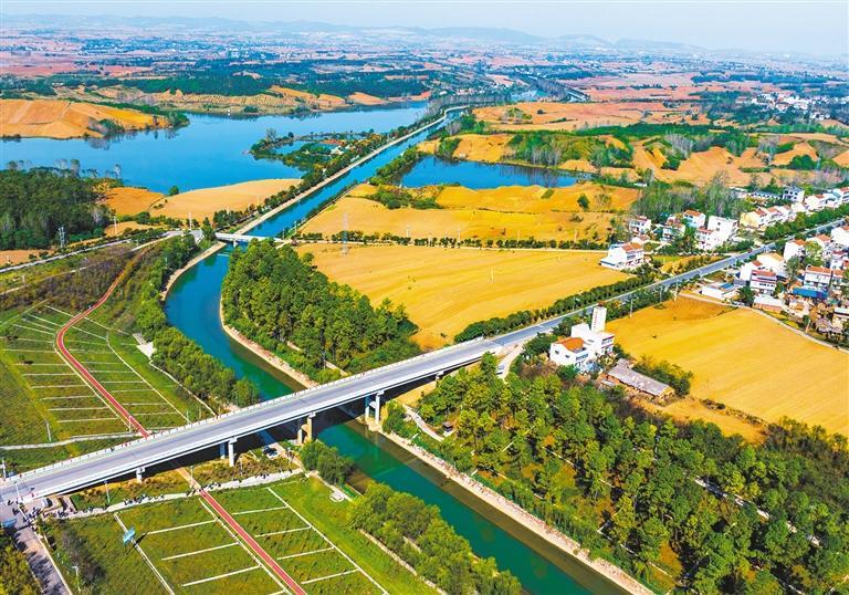 10月23日,位于湖北省襄阳市老河口袁冲乡的丹渠正缓缓输水。今年是襄阳市引丹灌溉工程通水50周年,已累计引水超450亿立方米,灌区粮食总产量突破1300亿斤,助力襄阳成为国家粮食安全保障和优质农产品生产供应基地。杨 东摄(中经视觉)