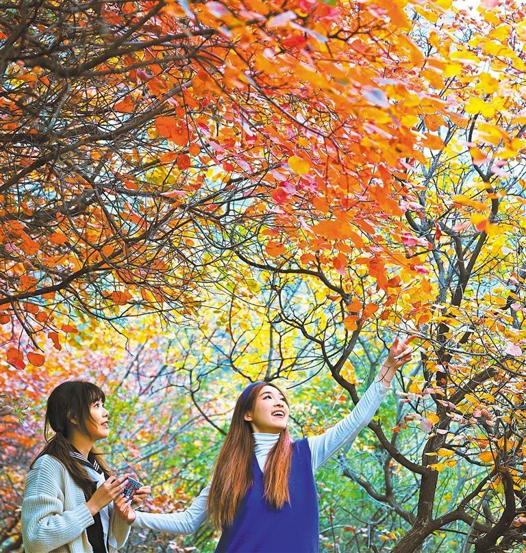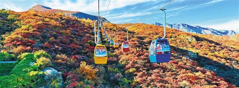 ▲10月27日,北京市房山区坡峰岭景区漫山红遍、层林尽染。