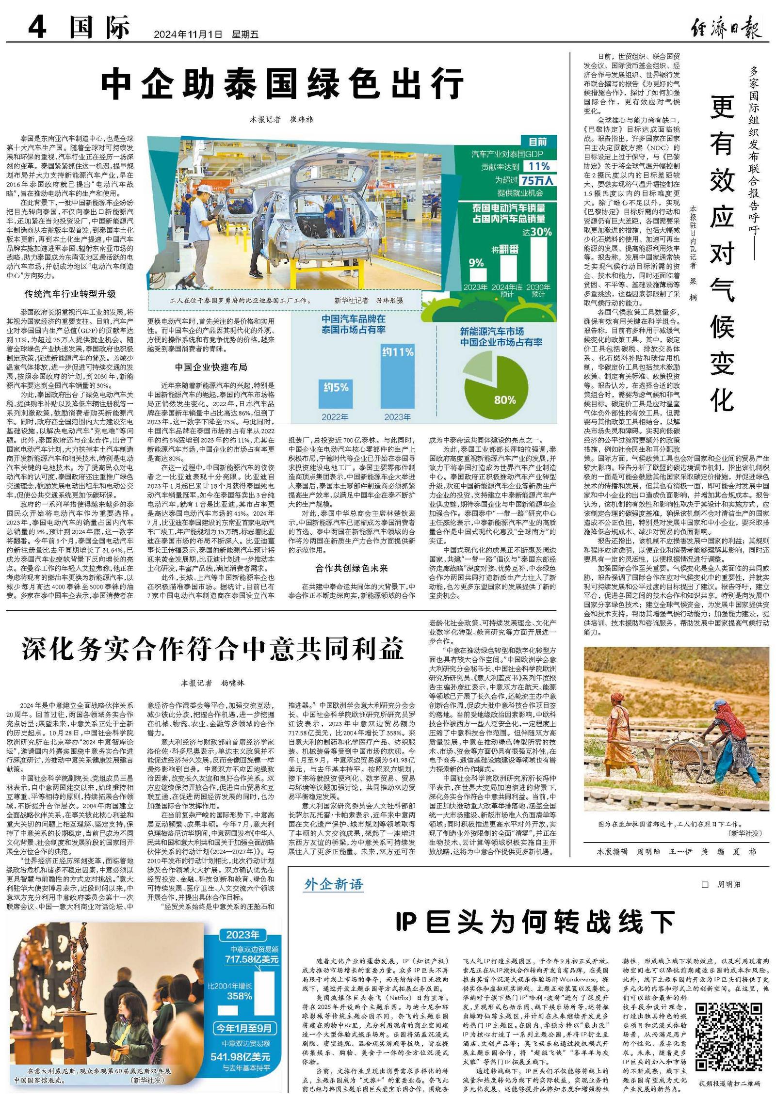 对此,泰国中华总商会主席林楚钦表示,中国新能源汽车已逐渐成为泰国消费者的首选。泰中两国在新能源汽车领域的合作将为两国在新质生产力合作方面提供新的示范作用。