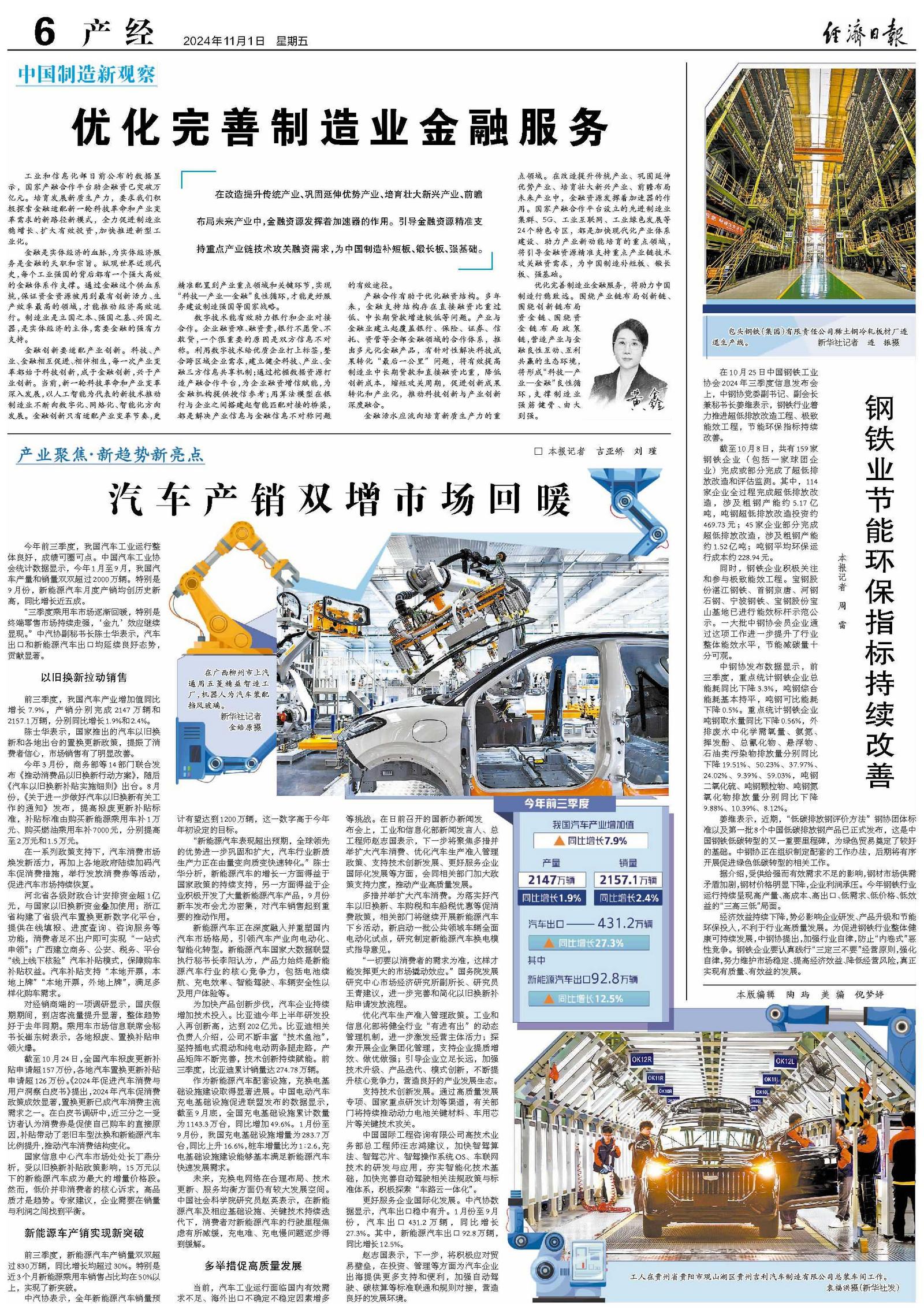 在10月25日中国钢铁工业协会2024年三季度信息发布会上,中钢协党委副书记、副会长兼秘书长姜维表示,钢铁行业着力推进超低排放改造工程、极致能效工程,节能环保指标持续改善。