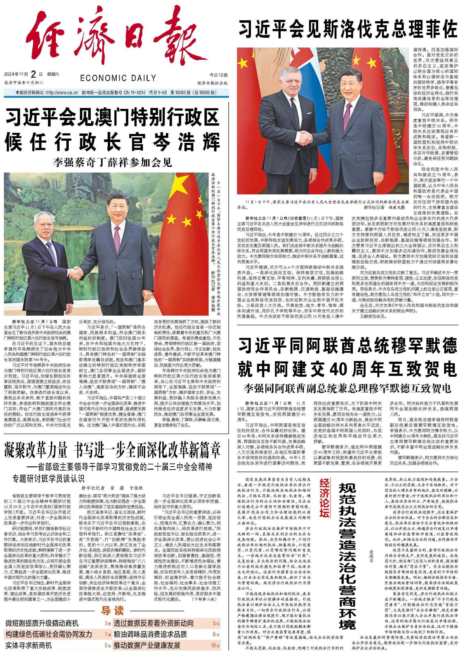 习近平指出,中国共产党二十届三中全会对进一步全面深化改革、推进中国式现代化作出系统部署,强调要发挥“一国两制”制度优势,健全香港、澳门在国家对外开放中更好发挥作用机制。这为澳门融入中国式现代化、实现自身更好发展指明了方向,提供了新的历史机遇。担任行政长官是一份沉甸甸的责任,承载着中央的重托和广大澳门居民的厚望。希望你勇挑重担、不负使命,带领特别行政区新一届政府,团结社会各界,勠力同心、守正创新,担当进取、善作善成,不断开创具有澳门特色的“一国两制”实践新局面,为强国建设、民族复兴作出更大贡献。