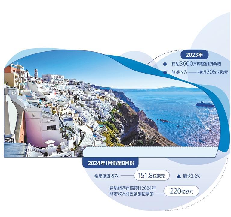 旅游业作为希腊国民经济的支柱型产业,一直是希腊政府大力发展的经济引擎。目前希腊旅游业已步入全面复苏轨道。根据希腊央行的数据,2023年有超3600万游客到访希腊,旅游收入接近205亿欧元,远超2019年新冠疫情前水平。今年前9个月,希腊再次迎来了令人印象深刻的游客浪潮,展现出强劲的旅游复苏态势。
