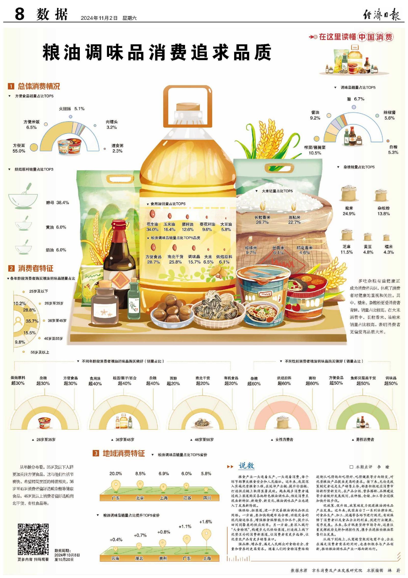 粮食产业一头连着生产,一头连着消费,每个环节都事关粮食安全和人民福祉。近年来,我国深入实施优质粮食工程,在延伸产业链、提升价值链、打造供应链上取得显著成效。越来越多消费者通过线上渠道购买各地特色粮油调味品,相关消费呈现出新特征、新趋势、新变化,粮油调味品产业也进入了发展新阶段。