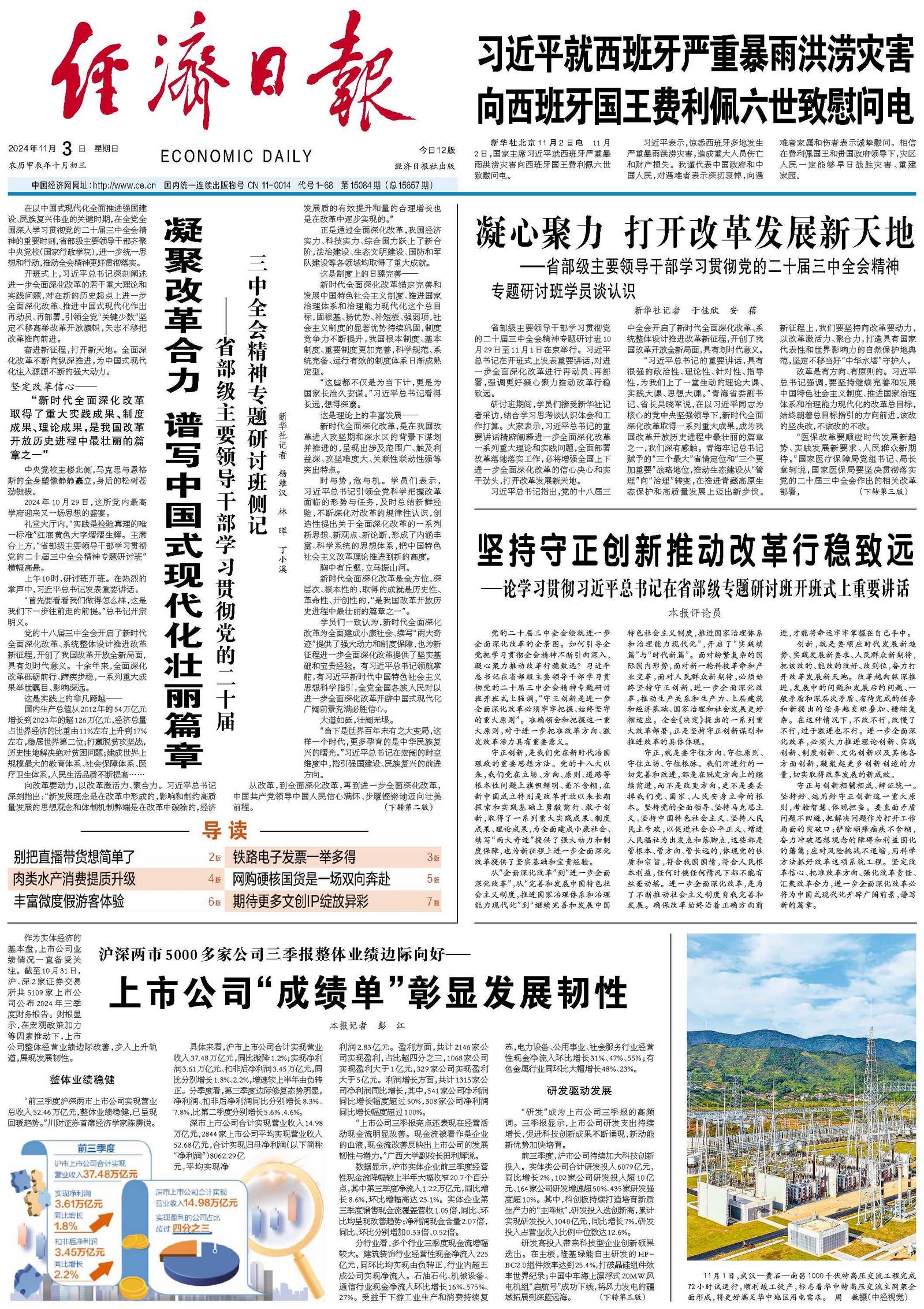 作为实体经济的基本盘,上市公司业绩情况一直备受关注。截至10月31日,沪、深2家证券交易所共5109家上市公司公布2024年三季度财务报告。财报显示,在宏观政策加力等因素推动下,上市公司整体经营业绩边际改善,步入上升轨道,展现发展韧性。