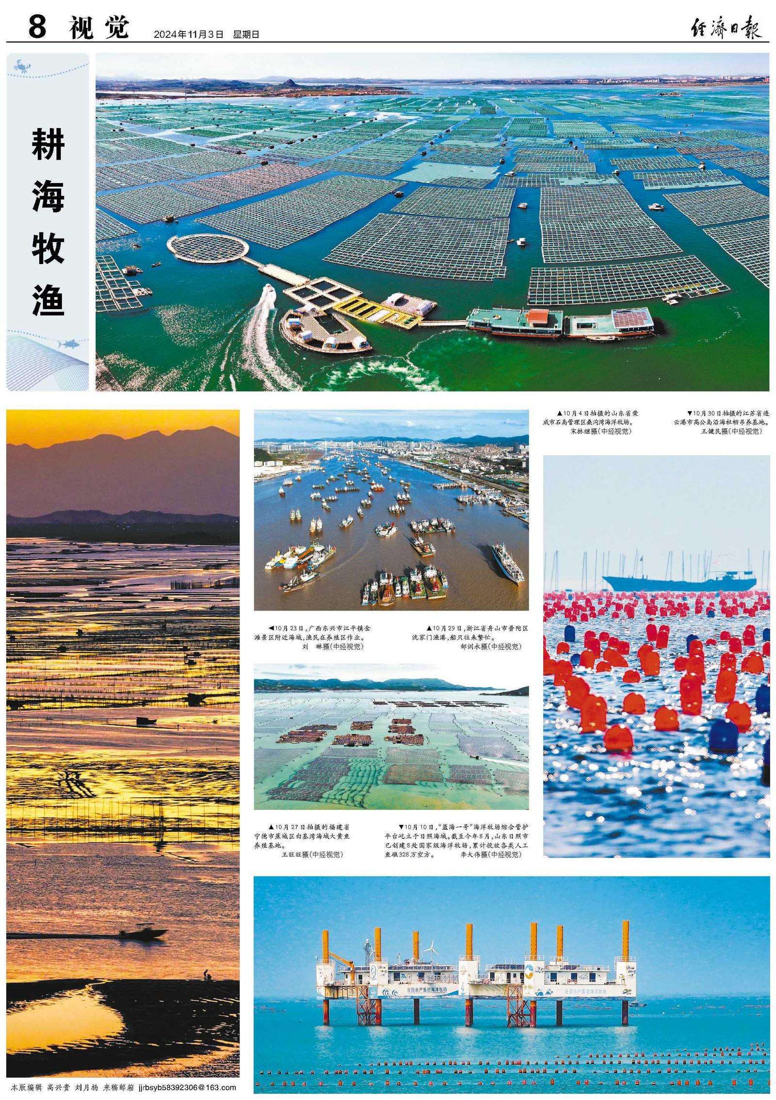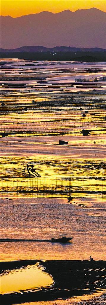 ◀10月23日,广西东兴市江平镇金滩景区附近海域,渔民在养殖区作业。