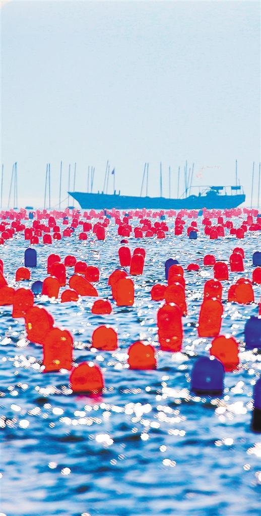 ▼10月30日拍摄的江苏省连云港市高公岛沿海牡蛎吊养基地。