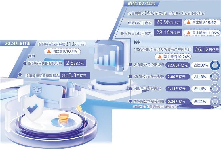 近年来,金融监管部门陆续发布系列政策,允许保险资金投资公募基础设施证券投资基金,取消财务性股权投资的行业范围,取消投资单只创业投资基金募资规模的限制,支持保险公司发挥价值投资者和机构投资者作用,助力提升直接融资比重。数据显示,今年8月末,保险资金运用余额31.8万亿元,同比增长10.4%,其中,保险资金长期股权投资2.8万亿元,投资股票和股票型基金超过3.3万亿元。保险资金作为资本市场中的重要机构投资者,在大类资产配置趋向固定收益类产品的背景下,保险公司的投资团队和保险资管公司都发挥了重要的投资引导、风险缓释以及市场支持作用。