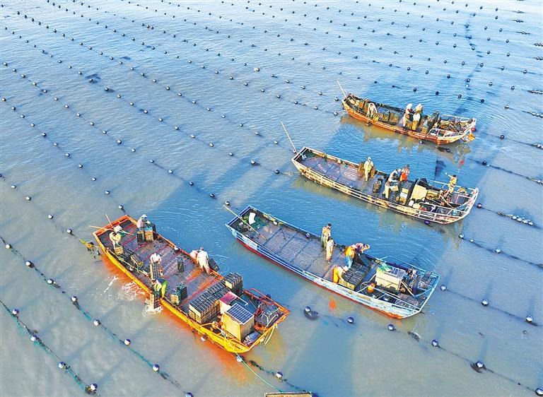 11月3日,山东省荣成市爱伦湾海洋牧场鲍鱼养殖工人将南下“越冬”的鲍鱼装船发往福建海域继续养殖。为应对冬季北方低温天气,荣成和福建莆田、平潭等地从2004年开始开展鲍鱼南北转场、冬夏对调养殖合作,大大提高了养殖效益。王福东摄(中经视觉)