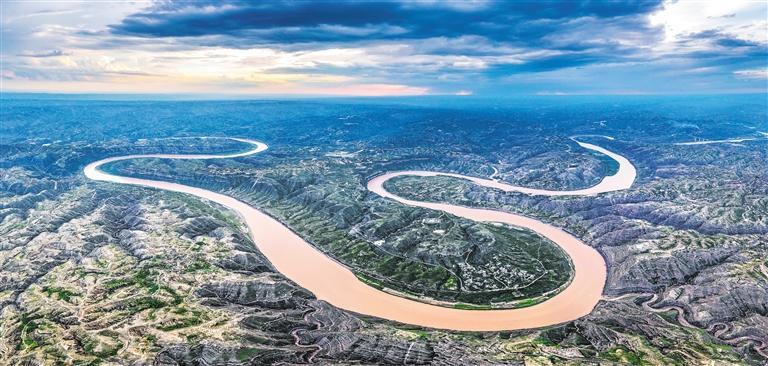 ▼8月19日,永和黄河乾坤湾景区,黄河蜿蜒流淌,形成了68公里的曲折河道。