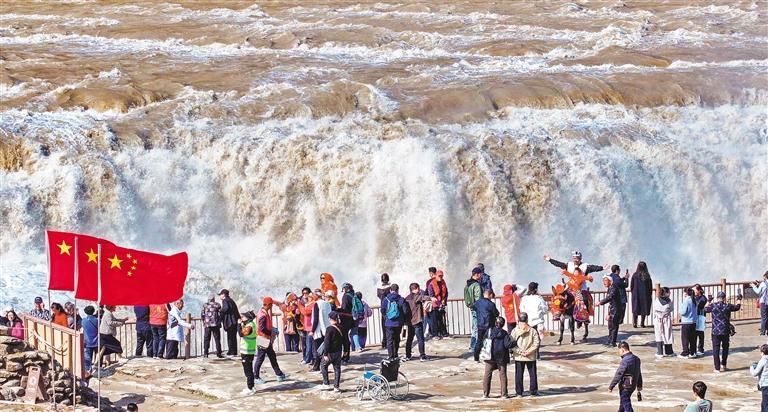 ▲10月25日,临汾市吉县黄河壶口瀑布旅游区,游客在观赏“黄河之水天上来”的壮美景象。近年来,临汾精心打造全国5A级旅游景区,游客数量持续增多。赵俊堂摄(中经视觉)