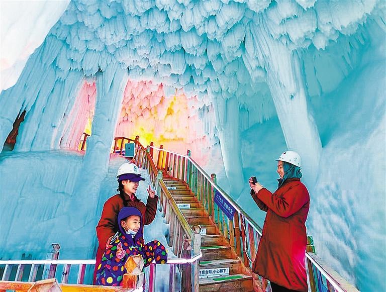 ◀10月26日,乡宁县云丘山冰洞群,洞内四季皆冰、景观各异,令人流连忘返。
