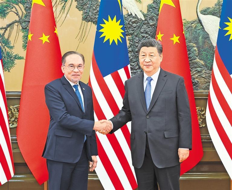 安瓦尔表示,习近平主席提出构建人类命运共同体等重要理念,倡导不同文明包容互鉴,并就引领推动“金砖+”合作提出高屋建瓴的意见建议,体现了对人类文明进步和人民利益福祉的深厚情怀和智慧担当,代表了全球南方的共同愿望和心声。马方对习近平主席的远见和倡议表示赞赏和支持。马来西亚政府致力于进一步深化同中国的全面战略伙伴关系,加强信息技术、数字经济、能源等合作。马方钦佩中方在减贫领域取得的令人赞叹的成就,期待学习借鉴中方治国理政经验。马中在许多重大国际地区问题上理念相同、立场相近,马方坚持战略自主,愿同中方密切多边协作,维护地区和平稳定和发展繁荣。