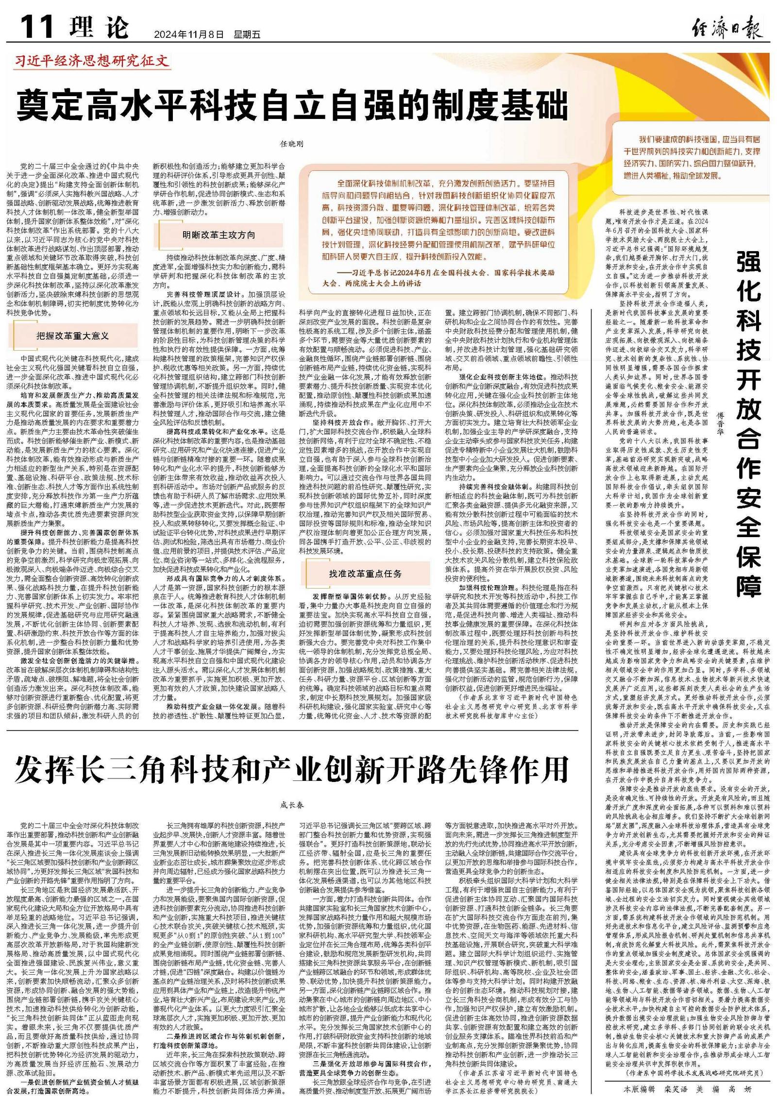 中国式现代化关键在科技现代化,建成社会主义现代化强国关键看科技自立自强,进一步全面深化改革、推进中国式现代化必须深化科技体制改革。