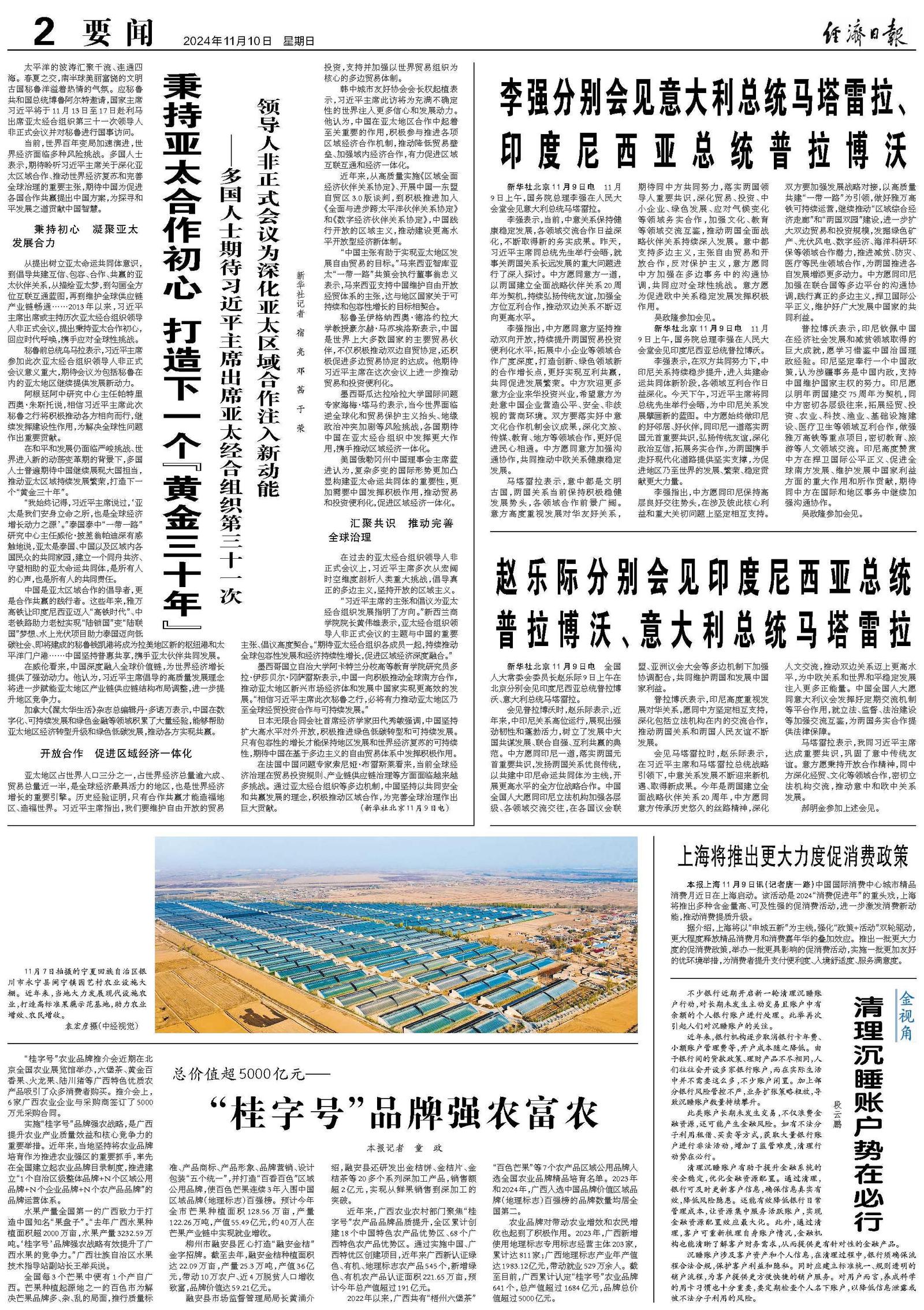 2022年以来,广西共有“梧州六堡茶”“百色芒果”等7个农产品区域公用品牌入选全国农业品牌精品培育名单。2023年和2024年,广西入选中国品牌价值区域品牌(地理标志)百强榜的品牌数量均居全国第二。