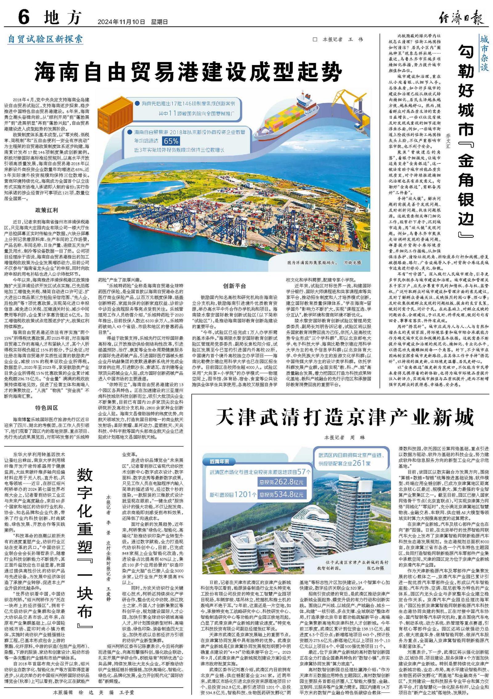 “依特而立”,海南自由贸易港建设的13个园区各具特色。正在加速建设的三亚崖州湾科技城依科技创新而立,吸引大批顶尖企业不断集聚,目前已有国内20多家顶尖农业科研院所及高校分支机构、2800余家种业创新企业入驻。海南文昌借助独特的纬度优势,向航天领域发力,打造我国目前唯一的商业航天发射场;星际荣耀、星河动力、蓝箭航天、天兵科技、中科宇航等国内头部商业航天企业已进驻或计划落地文昌国际航天城。