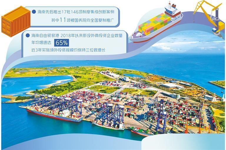 政策制度体系基本成型,以“零关税、低税率、简税制”和“五自由便利一安全有序流动”为主框架的自贸港政策制度体系逐步构建,海南累计发布17批146项制度集成创新案例。积极对接国际高标准经贸规则,以高水平开放引领高质量发展,海南自由贸易港2018年以来新设外商投资企业数量年均增速达65%,近3年实际境外投资规模均保持三位数增长。营商环境持续优化,海南成为全国首个以立法形式实施市场准入承诺即入制的省份;实行告知承诺的涉企经营许可事项达121项,数量位居全国第一。