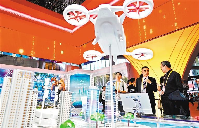 ▲11月5日,观众在进博会中国馆中兴通讯展台参观。