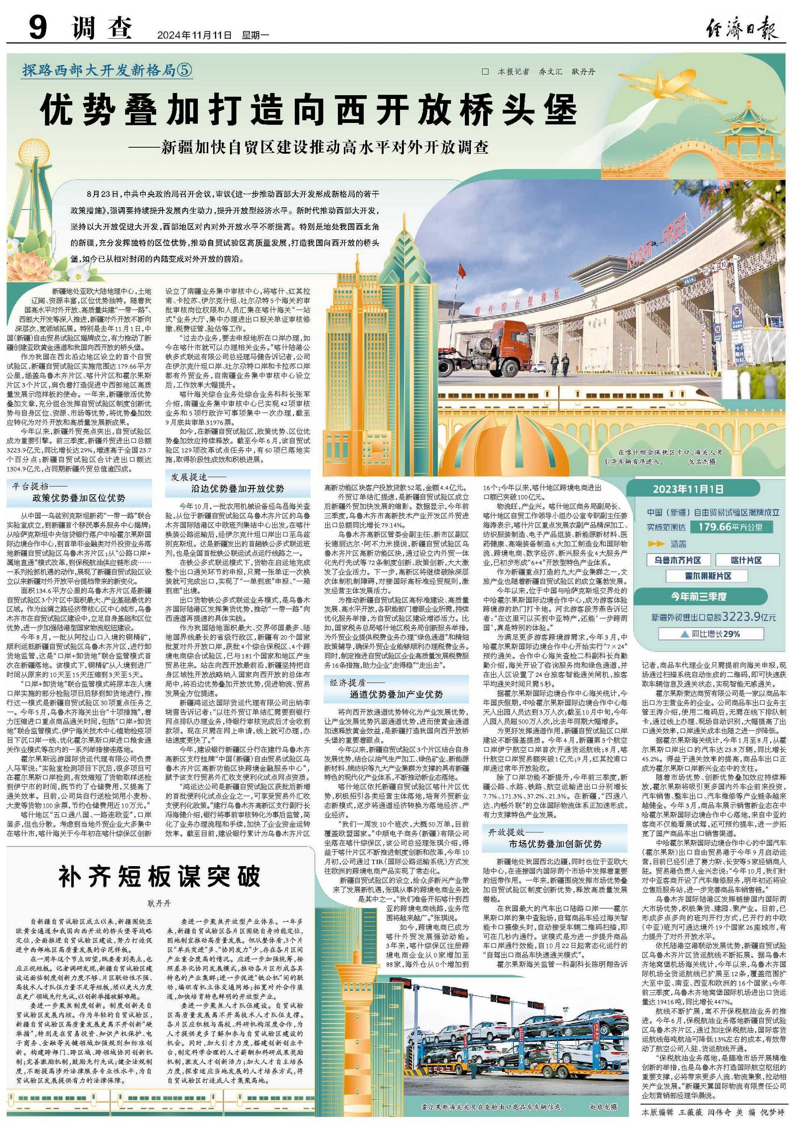 如今,在新疆自贸试验区,政策优势、区位优势叠加效应持续释放。截至今年6月,该自贸试验区129项改革试点任务中,有60项已落地实施,取得阶段性成效和积极进展。