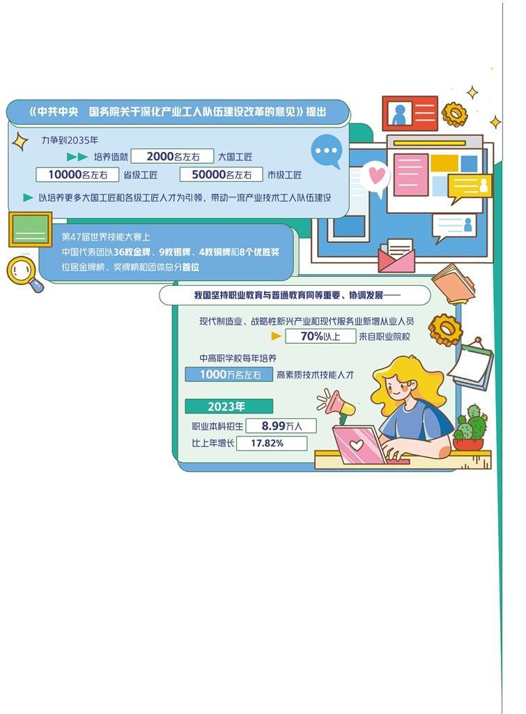 《意见》提出,实施技能中国行动,大力开展职业技能培训,全面推行企业新型学徒制培训,构建贯穿劳动者学习工作终身、覆盖职业生涯全程的技能培训体系。