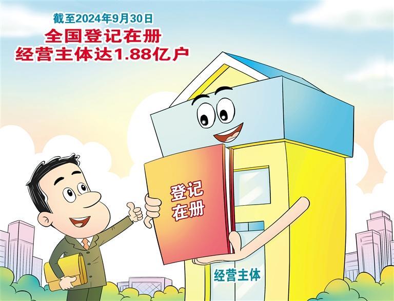 国家市场监督管理总局近日发布数据显示,截至今年9月30日,全国登记在册经营主体1.88亿户,较去年同期增长3.9%。其中,企业6020万户、个体工商户1.25亿户,同比分别增长6.1%、3.0%。经营主体作为经济活动的“细胞”,在提供就业机会、推动技术进步和促进产业升级等方面发挥着至关重要的作用。全国登记在册经营主体的持续增加反映了我国经济发展的强劲动力。通过政策支持和制度保障,激发了经营主体活力,为推动经济高质量发展提供了坚实的基础和强大的动力。应多措并举,从政策扶持、优化营商环境、提供公平竞争市场环境、金融支持等方面施策,进一步激发经营主体活力。 (时 锋)