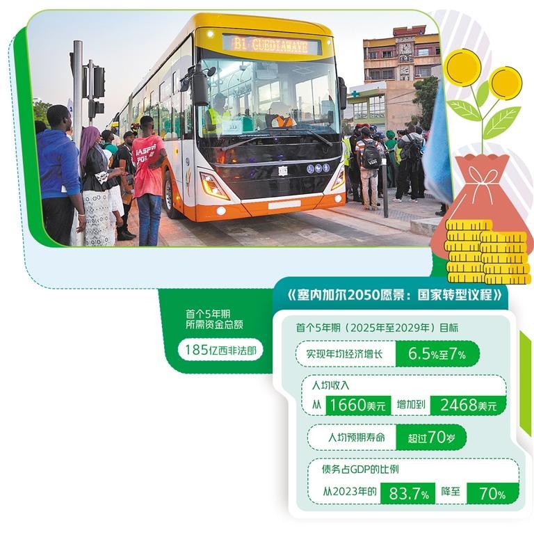 根据规划,塞内加尔预计,到2050年实现经济多元化转型,人均收入增加两倍,大幅降低贫困率,消除过度负债,提高社会包容性,提升治理水平,推动国家文化、能源、金融和技术等领域全面繁荣。