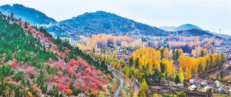 十一月十五日,山东省枣庄市薛城区凤凰绿道五彩斑斓,吸引众多市民游客前来观赏。洪晓东摄(中经视觉)