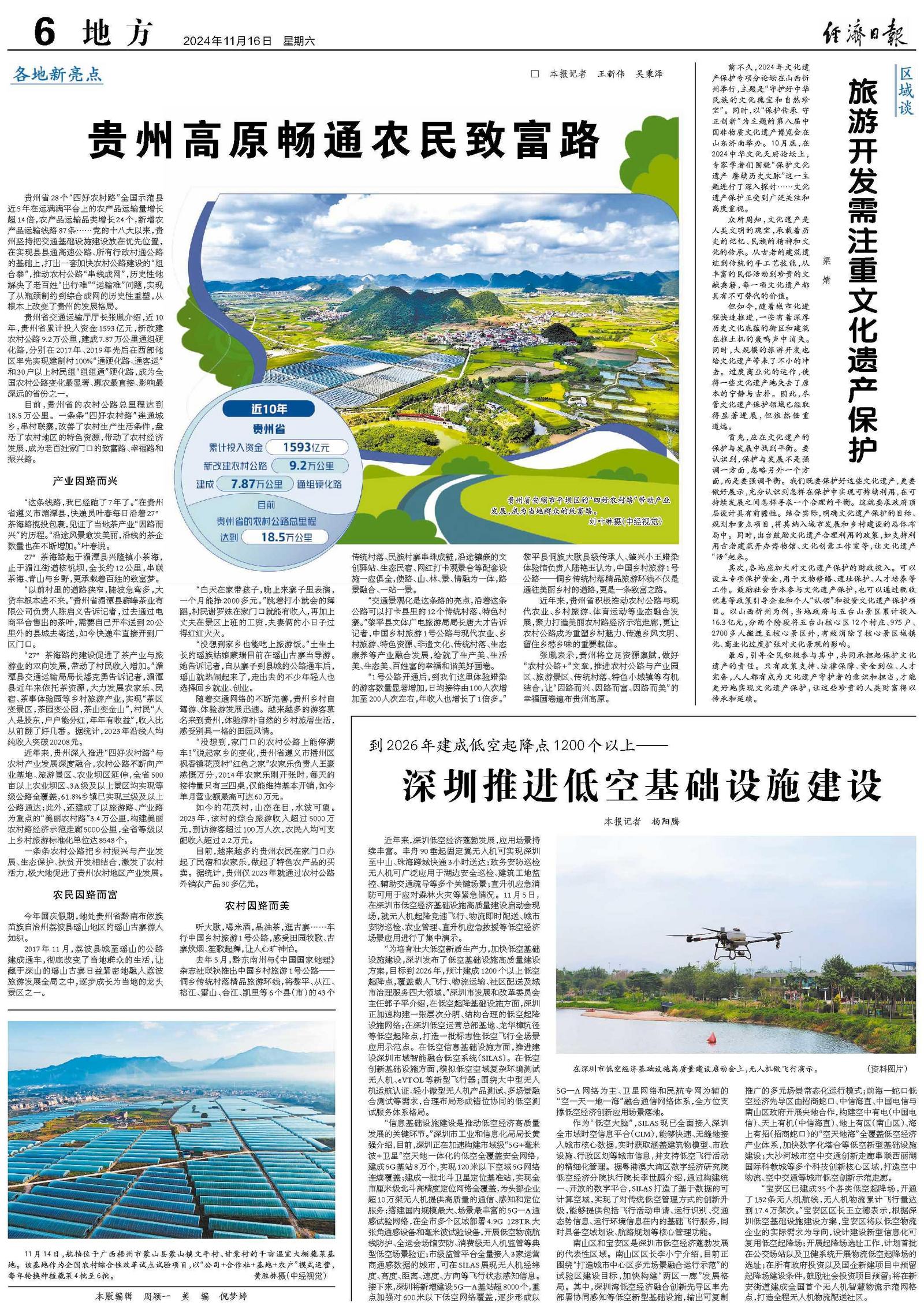 贵州省28个“四好农村路”全国示范县近5年在运满满平台上的农产品运输量增长超14倍,农产品运输品类增长24个,新增农产品运输线路87条……党的十八大以来,贵州坚持把交通基础设施建设放在优先位置,在实现县县通高速公路、所有行政村通公路的基础上,打出一套加快农村公路建设的“组合拳”,推动农村公路“串线成网”,历史性地解决了老百姓“出行难”“运输难”问题,实现了从瓶颈制约到综合成网的历史性重塑,从根本上改变了贵州的发展格局。