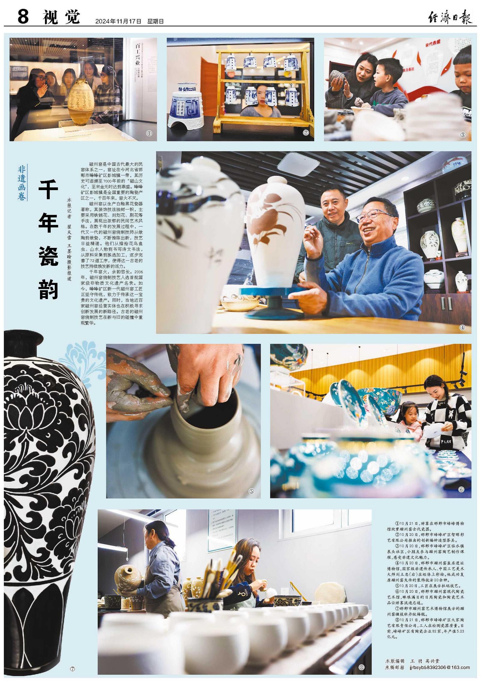 千年窑火,余韵悠长。2006年,磁州窑烧制技艺入选首批国家级非物质文化遗产名录。如今,峰峰矿区新一代磁州窑工匠正坚守传统,致力于传承这一宝贵的文化遗产。同时,当地近百家磁州窑经营实体也在积极寻求创新发展的新路径。古老的磁州窑烧制技艺在新与旧的碰撞中重现繁华。