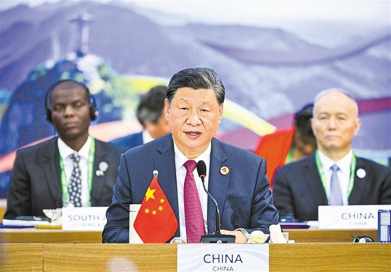 在峰会第二阶段会议围绕“全球治理机构改革”议题讨论时,习近平发表题为《携手构建公正合理的全球治理体系》的重要讲话。(全文见二版)