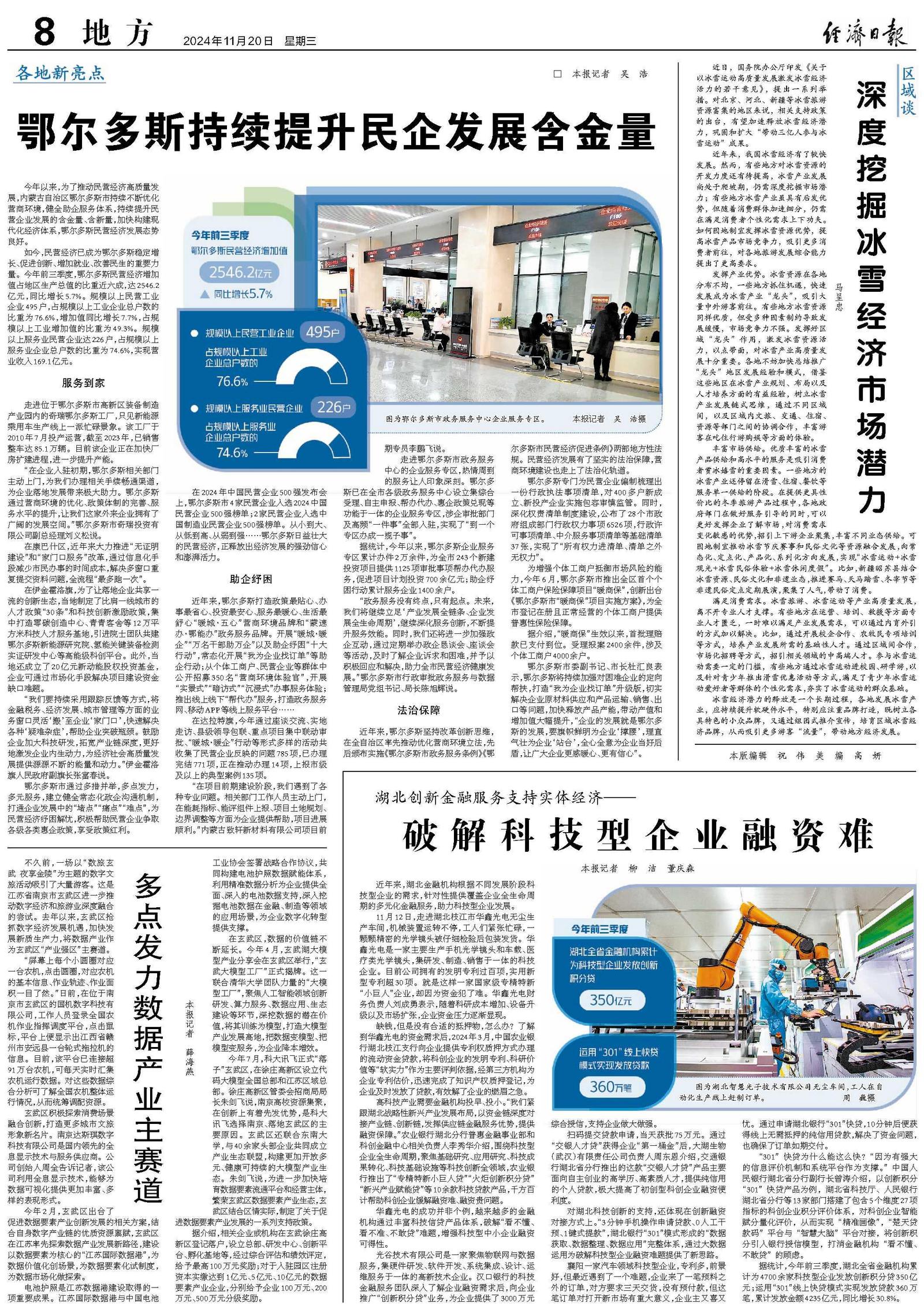 今年以来,为了推动民营经济高质量发展,内蒙古自治区鄂尔多斯市持续不断优化营商环境,健全助企服务体系,持续提升民营企业发展的含金量、含新量,加快构建现代化经济体系,鄂尔多斯民营经济发展态势良好。