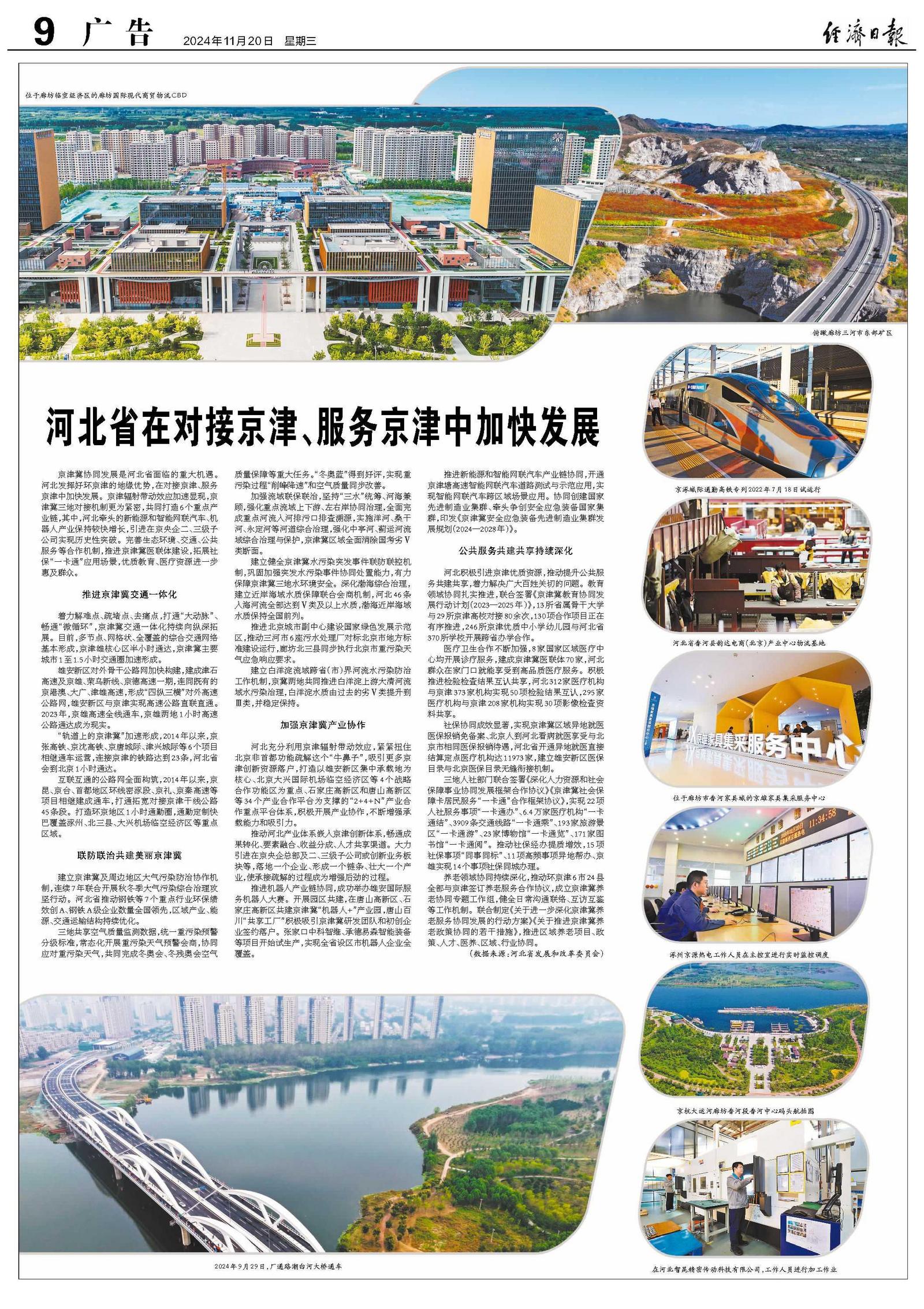 京津冀协同发展是河北省面临的重大机遇。河北发挥好环京津的地缘优势,在对接京津、服务京津中加快发展。京津辐射带动效应加速显现,京津冀三地对接机制更为紧密,共同打造6个重点产业链,其中,河北牵头的新能源和智能网联汽车、机器人产业保持较快增长,引进在京央企二、三级子公司实现历史性突破。完善生态环境、交通、公共服务等合作机制,推进京津冀医联体建设,拓展社保“一卡通”应用场景,优质教育、医疗资源进一步惠及群众。