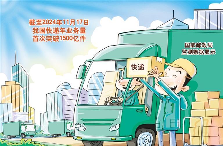国家邮政局监测数据显示,截至11月17日,我国快递年业务量首次突破1500亿件。快递市场规模的持续扩大,得益于宏观利好政策的驱动。多部门多地区发布促消费、扩内需的支持政策,以实施大规模设备更新和消费品以旧换新行动为契机,不断丰富消费场景,开拓下沉市场,巩固了当前持续向好的发展态势,带动了快递业务量强劲增长。与此同时,我国快递市场保持繁荣活跃,发展质效不断提升,加快推进产业升级、拉动生产消费,为更好提高经济运行效率、畅通实体经济循环作出重要贡献。接下来,应从科技创新引领产业创新,提高服务质量,加强监管和政策支持,走绿色、环保、可持续的发展道路等方面发力,实现快递业高质量发展,推动行业向更加规范、有序的方向发展壮大。 (时 锋)
